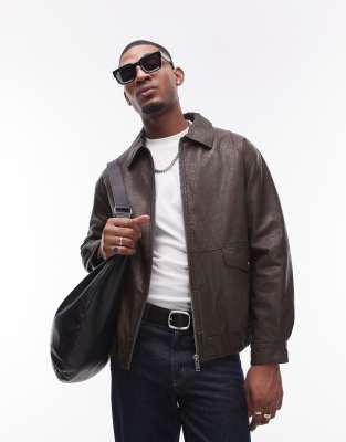Επισκέψου το κατάστημα Asos για να δεις περισσότερες λεπτομέρειες και φωτογραφίες για το Topman faux leather harrington jacket in brown. Για αγορά του Topman faux leather harrington jacket in brown πρέπει να επισκεφτείς το κατάστημα Asos.