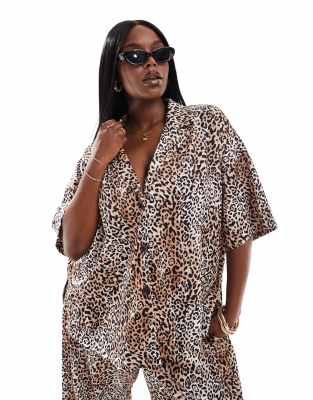 Tops by ASOS Curve Part of a co-ord set Bottoms sold separately Animal print Revere collar Button placket Relaxed fit