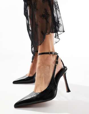 Shoes by ASOS DESIGN Love your heels where did you get them? Mock-snake design Adjustable strap Pin-buckle fastening Pointed toe High point heel