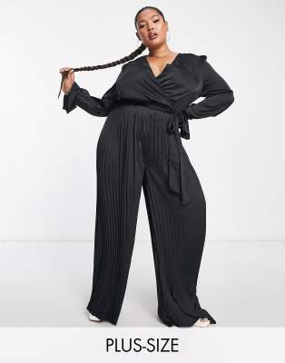 Jumpsuits & Playsuits by In The Style Plus No need for a dress to impress V-neck Wrap front Long sleeves Tie waist Pleated details Wide leg Regular fit
