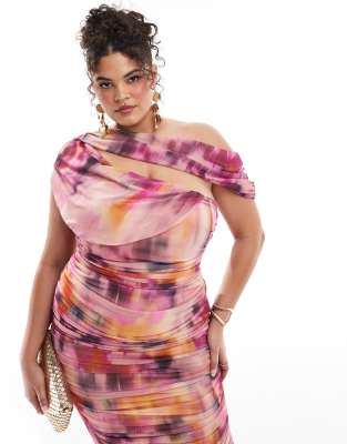 Dresses by ASOS Curve Occasions made easy Abstract design Off-shoulder style Ruched detail Bodycon fit