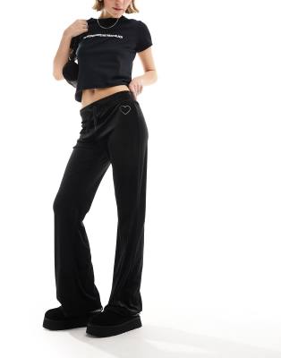 Trousers by Monki These are going to be *well loved* Mid rise Drawstring waistband Diamante heart detail Flared straight fit
