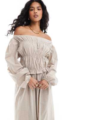 Dresses by ASOS DESIGN For your weekend plans Gingham design Off-shoulder style Stretch shirred panels Long sleeves Maxi cut Regular fit