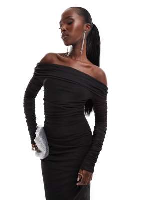 Dresses by Flounce London Let's hear it for the dress Ruched design Bardot neck Fold-over detail Long sleeves Side split Regular fit