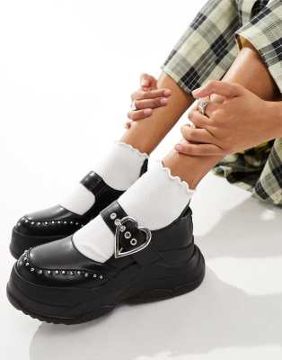 Shoes by Lamoda Good things come in pairs Heart buckle Stud details Round toe Chunky sole Textured tread
