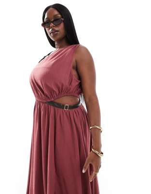 Dresses by ASOS Curve Occasions made easy One-shoulder style Belt strap Sleeveless style Elasticated waist Cut-out side Regular fit