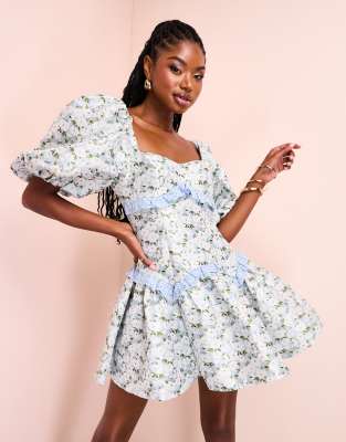 Dresses by ASOS LUXE POV: you have plans Floral design Sweetheart neck Puff sleeves Zip-back fastening Regular fit