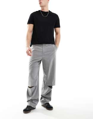 Trousers & Chinos by ASOS DESIGN Fancy pants Regular rise Belt loops Concealed fly Side pockets Cut-out detail to knees Wide leg