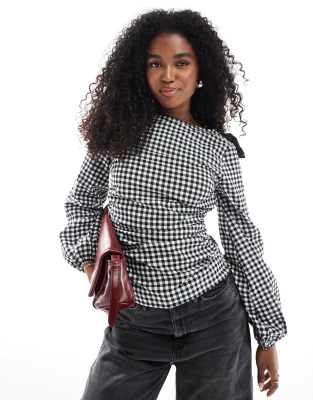 Tops by ASOS DESIGN Check design Round neck Long sleeves Bow details Ruched sides Regular fit