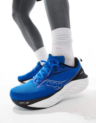 Shoes Boots & Trainers by Saucony Go the extra mile Low-profile design Lace-up fastening Padded tongue and cuff Signature Saucony branding PWRRUN + midsole and PWRRUN+ sockliner offers extra cushioning and comfort Chunky sole Textured grip tread