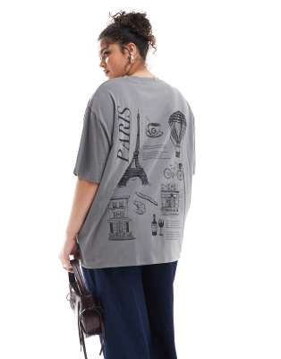 Tops by ASOS Curve Off-duty mood Crew neck Drop shoulders Paris-inspired graphics Boyfriend fit