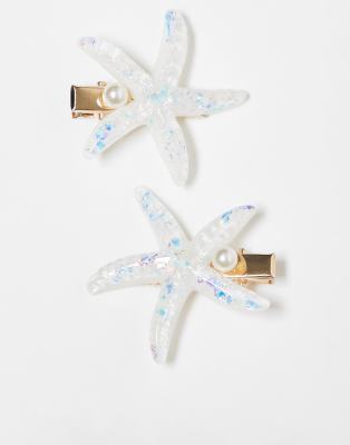 Accessories by DesignB London Make every day a good hair day Pack of two Starfish design Iridescent finish Faux-pearl embellishment Clip style Slides into your hair