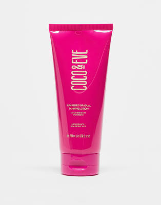 Face + Body by Coco & Eve Gradual tan Lotion texture Buildable shade Leaves skin soft smooth and scented with a refreshing Coco-Mango fragrance Enriched with hyaluronic acid passionfruit oil inca inchi oil coconut mango and papaya extracts Lightweight fast-absorbing formula Product is non-returnable for hygiene reasons