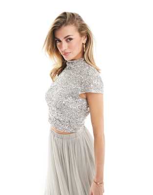 Tops by Beauut Part of a co-ord set Skirt sold separately Embellished design High neck Cap sleeves Open back Cropped length Slim fit