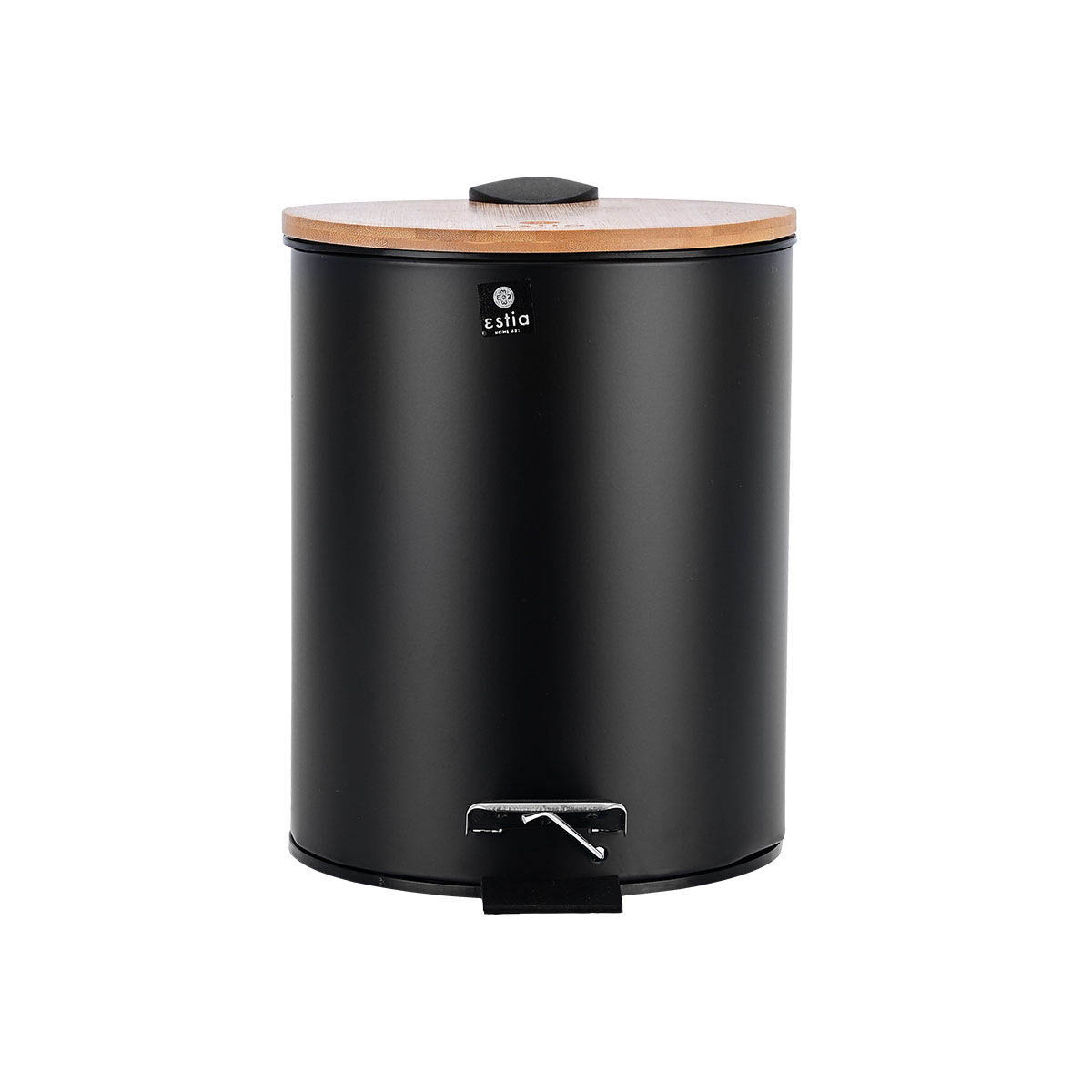 Κάδος απορριμμάτων ανάγλυφος χωρητικότητας 5lt από την εταιρεία εstia. Είναι κατασκευασμένος από μεταλλικό υλικό σε μαύρο χρώμα με επίστρωση πούδρας που τον καθιστά ιδιαίτερα ανθεκτικό. Το καπάκι του είναι από υψηλής ποιότητας bamboo σε φυσικό χρώμα. Διαθέτει εσωτερικό πλαστικό δοχείο για εύκολο πλύσιμο και έχει αθόρυβο κλείσιμο.