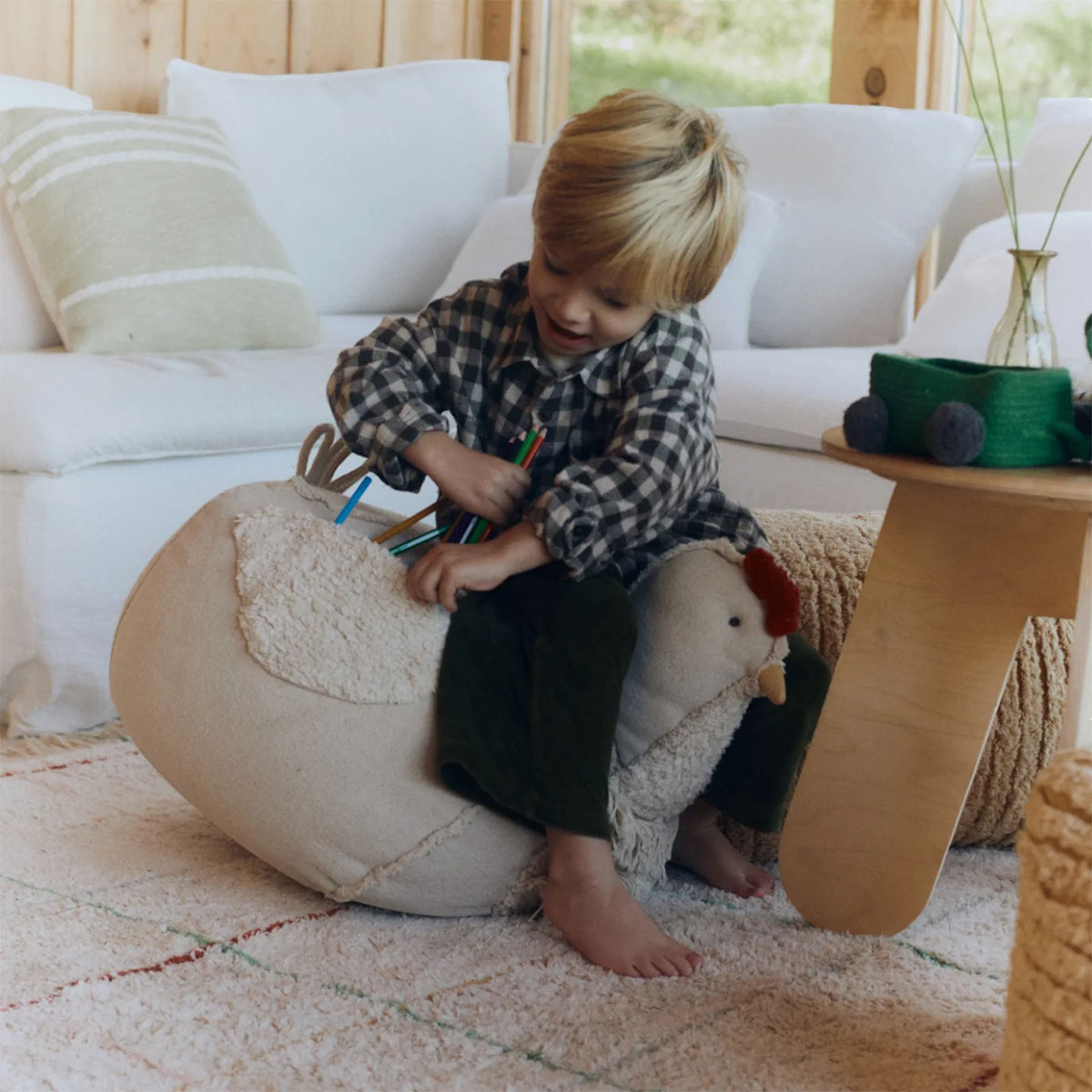 Αυτό το χειροποίητο και όμορφα σχεδιασμένο πουφ δημιουργεί ένα τέλειο κάθισμα στο παιδικό δωμάτιο ή στο σαλόνι σας. Μια απαλή μπάλα τόπι που χρησιμεύει ως αυτοσχέδιο καθιστικό κατά την ώρα του παιχνιδιού. Φτιαγμένο στο χέρι που καθιστά κάθε κομμάτι μοναδικό και με φερμουάρ για να αφαιρείται εύκολα το κάλυμμα. Είναι πολύχρωμο με μη τοξικές βαφές. Το κάλυμμα είναι κατασκευασμένο από 97% βαμβάκι-3% άλλες ίνες και η γέμιση είναι κατασκευασμένη από ένα μείγμα ινών από ανακυκλωμένα μπουκάλια PET και χάντρες πολυστυρολίου. Κατάλληλο για υποδαπέδια θέρμανση. Το κάλυμμα πλένεται εύκολα στο πλυντήριο, ενώ η γέμιση δεν πλένεται. Πληροί όλους τους κανονισμούς ποιότητας και ασφάλειας για παιδιά και έχει πιστοποίηση ISO 9001, ISO 14001, ISO 18001 και AITEX.