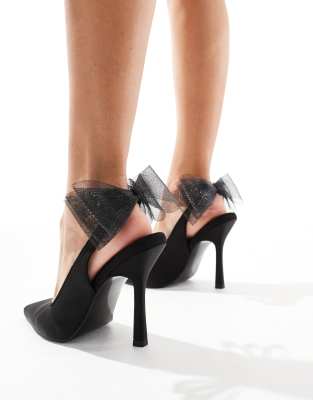 Shoes by ASOS DESIGN Styled from the sole Layered bow back Slip-on style Slingback strap Pointed toe Flat sole High point heel