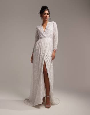 Επισκέψου το κατάστημα Asos για να δεις περισσότερες λεπτομέρειες και φωτογραφίες για το ASOS DESIGN Alexa sequin long sleeve wrap wedding dress in-White. Για αγορά του ASOS DESIGN Alexa sequin long sleeve wrap wedding dress in-White πρέπει να επισκεφτείς το κατάστημα Asos.
