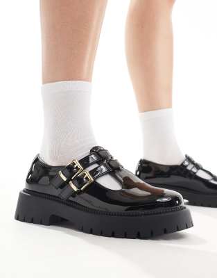 Shoes by Schuh Good things come in pairs Adjustable straps Pin-buckle fastening Round toe Chunky sole Wide fit