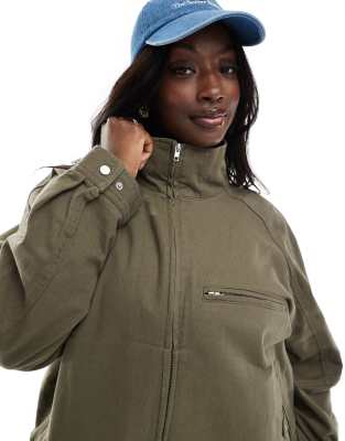 Coats & Jackets by ASOS Curve Funnel neck Zip fastening Functional pockets Stretch-back hem Oversized fit