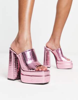 Επισκέψου το κατάστημα Asos για να δεις περισσότερες λεπτομέρειες και φωτογραφίες για το Daisy Street Exclusive platform mule sandals in pink croc metallic. Για αγορά του Daisy Street Exclusive platform mule sandals in pink croc metallic πρέπει να επισκεφτείς το κατάστημα Asos.