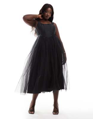 Dresses by Lace & Beads Plus Master the dress code Scoop neck Fixed straps Structured bodice Lace-up back Tulle overlay to skirt Regular fit
