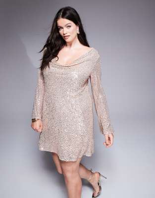 Dresses by Jaded Rose Plus BNO here you come All-over sequin embellishment Cowl neck Flared sleeves Relaxed fit