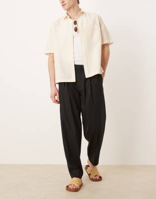 Επισκέψου το κατάστημα Asos για να δεις περισσότερες λεπτομέρειες και φωτογραφίες για το ASOS DESIGN smart oversized tapered linen blend trousers with front pleat in black. Για αγορά του ASOS DESIGN smart oversized tapered linen blend trousers with front pleat in black πρέπει να επισκεφτείς το κατάστημα Asos.
