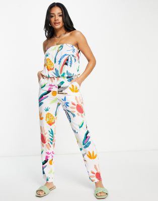 Jumpsuit by Urban Classics Co-ordinating made easy All-over fruit print Bandeau neck Side pockets Slim leg Regular fit