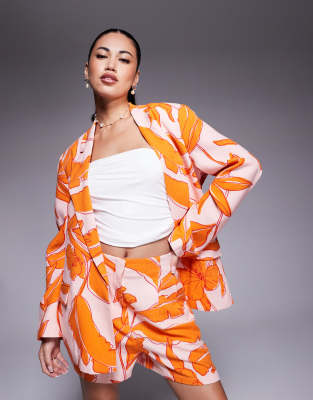 Shorts by ASOS DESIGN Tropical print High rise Concealed fly Pleated details Side pockets Regular fit