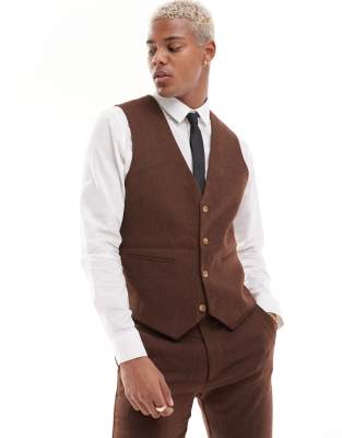 Επισκέψου το κατάστημα Asos για να δεις περισσότερες λεπτομέρειες και φωτογραφίες για το ASOS DESIGN wedding skinny wool mix suit waistcoat in brown basketweave texture. Για αγορά του ASOS DESIGN wedding skinny wool mix suit waistcoat in brown basketweave texture πρέπει να επισκεφτείς το κατάστημα Asos.