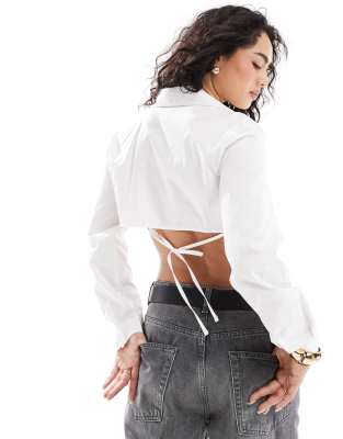 Tops by Bershka Spread collar Button placket Tie-back detail Cropped length Regular fit