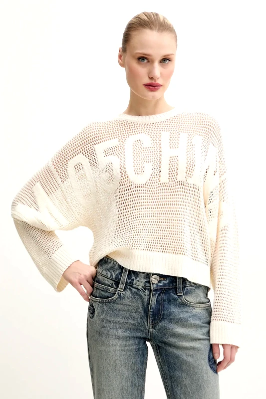 Πουλόβερ από τη συλλογή Moschino Jeans κατασκευασμένο από διάτρητη πλέξη. Ένα μοντέλο από εξαιρετικά άνετο και ευάερο υλικό, ιδανικό για τις πιο ζεστές εποχές.