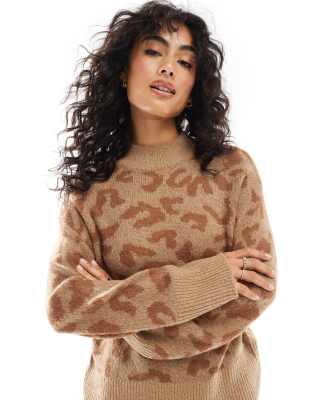 Jumpers & Cardigans by Y.A.S Part of a co-ord set Skirt sold separately Animal print Crew neck Long sleeves Ribbed trims Regular fit