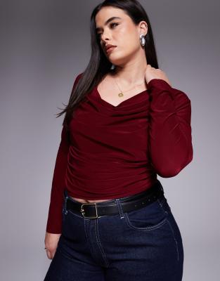 Tops by ASOS Curve Plain design Cowl neck Long sleeves Regular fit