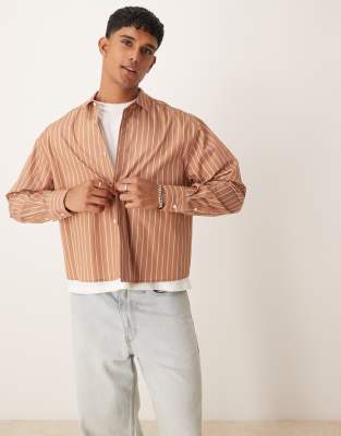Επισκέψου το κατάστημα Asos για να δεις περισσότερες λεπτομέρειες και φωτογραφίες για το ASOS DESIGN oversized cropped shirt in brown stripe. Για αγορά του ASOS DESIGN oversized cropped shirt in brown stripe πρέπει να επισκεφτείς το κατάστημα Asos.
