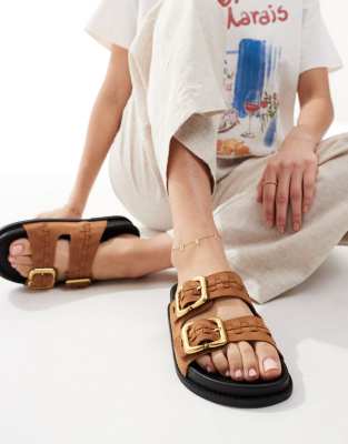 Shoes by ASOS DESIGN Pin-buckle straps Woven details Slip-on style Open toe Chunky sole