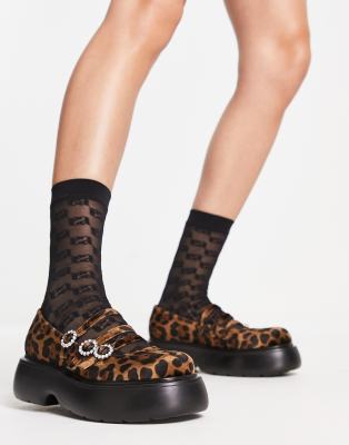 Shoes by ASOS DESIGN Two reasons to add to bag Leopard print Mary-Jane design Triple straps Diamante pin-buckle fastening Round toe Flatform sole Textured tread