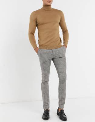 Trousers by Topman Do the smart thing Check design Regular rise Belt loops Side pockets Single back pocket Skinny fit Tight cut regular on the waist