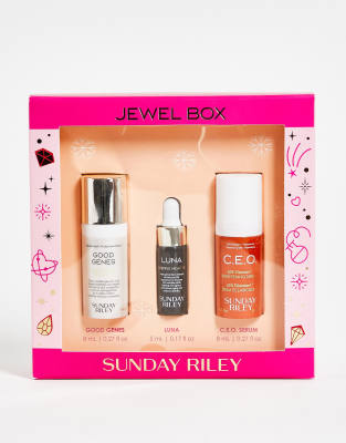 Skincare set by Sunday Riley Skincare just got serious Contains three travel-size products Designed to create brighter and more even-looking skin When used together glycolic acid retinol and vitamin C aim to reveal a more radiant and smooth complexion Presented in a branded gift box Product is non-returnable for hygiene reasons