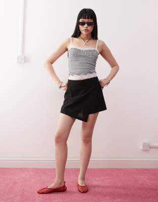 Skirts by Monki Give your trousers a day off Skort style High rise Wrap front Tie fastening Regular fit