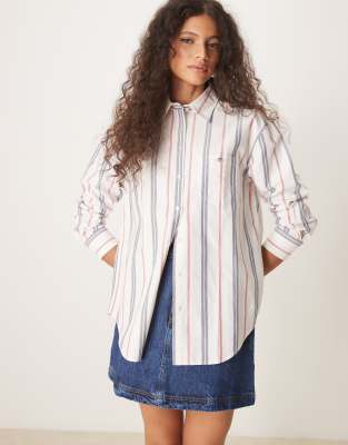 Tops by Gant Stripe design Spread collar Button placket Long sleeves Chest pocket Logo embroidery to chest Relaxed fit