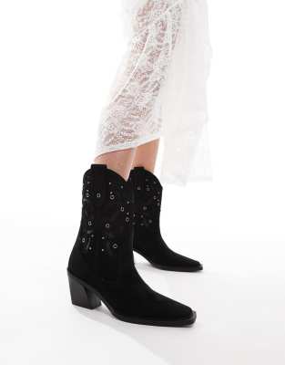 Shoes by ASOS DESIGN Western design Pull tabs for easy entry Stud embellishment Pointed toe Mid block heel