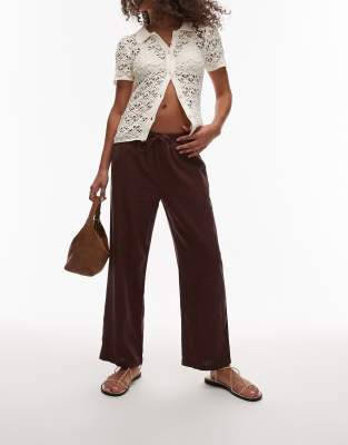 Επισκέψου το κατάστημα Asos για να δεις περισσότερες λεπτομέρειες και φωτογραφίες για το Topshop mid rise linen awkward length trouser in chocolate-Brown. Για αγορά του Topshop mid rise linen awkward length trouser in chocolate-Brown πρέπει να επισκεφτείς το κατάστημα Asos.