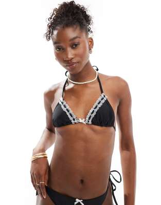 Swimwear & Beachwear by Collusion Exclusive to ASOS Bikini bottoms sold separately Halterneck style Non-padded triangle cups Bow detail Lace trim Tie fastening