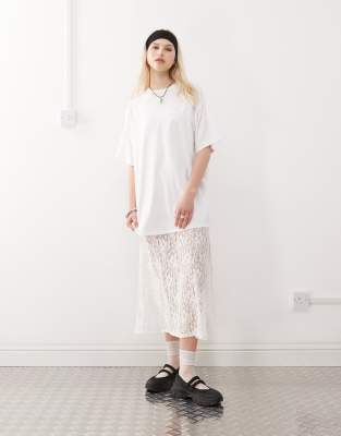 Επισκέψου το κατάστημα Asos για να δεις περισσότερες λεπτομέρειες και φωτογραφίες για το Reclaimed Vintage t-shirt midi dress with lace skirt in white. Για αγορά του Reclaimed Vintage t-shirt midi dress with lace skirt in white πρέπει να επισκεφτείς το κατάστημα Asos.