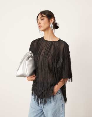 Tops by ASOS EDITION Out of screenshots into basket Fringed design Round neck Short sleeves Regular fit