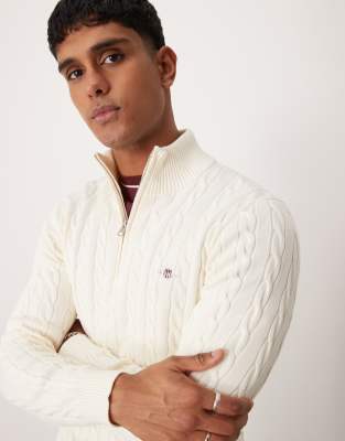Επισκέψου το κατάστημα Asos για να δεις περισσότερες λεπτομέρειες και φωτογραφίες για το GANT cotton cable knit half zip jumper with logo in cream-White. Για αγορά του GANT cotton cable knit half zip jumper with logo in cream-White πρέπει να επισκεφτείς το κατάστημα Asos.