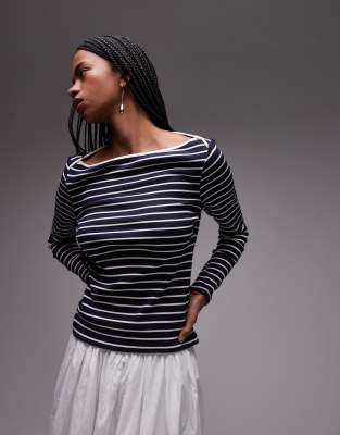 Tops by Mango Stripe design Boat neck Long sleeves Regular fit