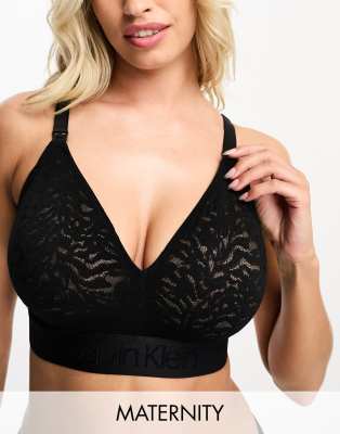 Maternity by Calvin Klein Treats for your top drawer Plunge neck Drop-down clips ideal for nursing Elasticated underband for a secure fit Adjustable straps Hook-and-eye fastening Designed to fit you from bump to baby